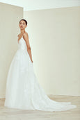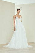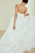 Silk Wool V-neck camisole A-line gown with pleated Fil coupé skirt
